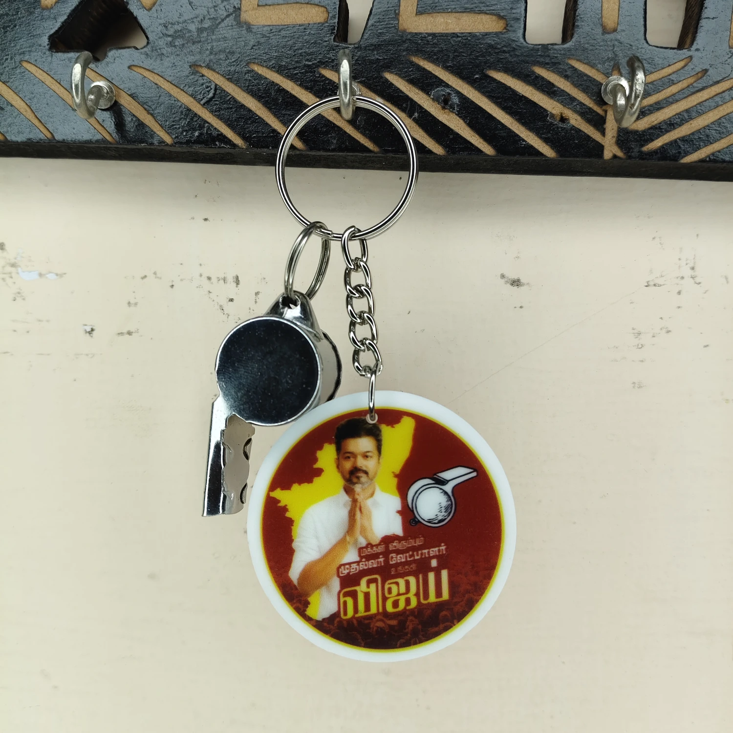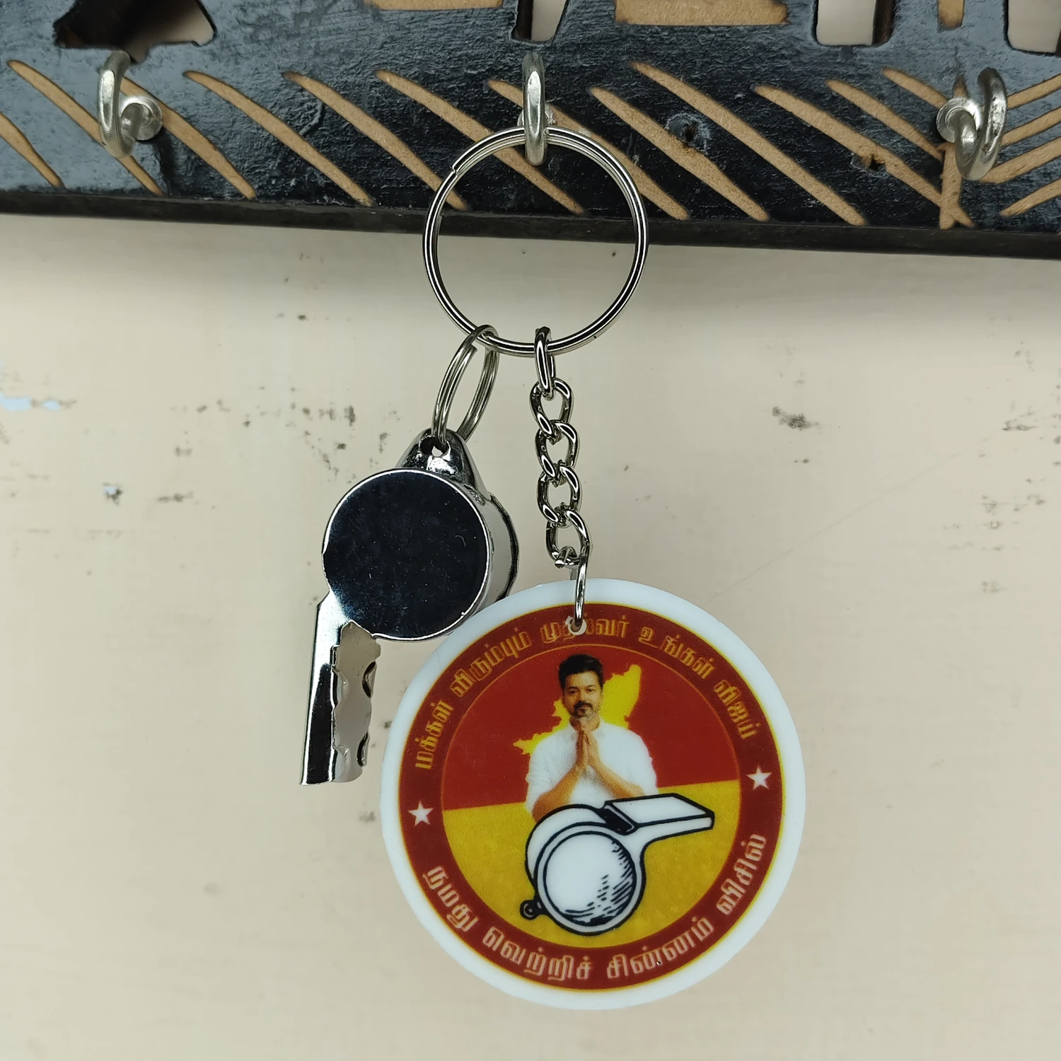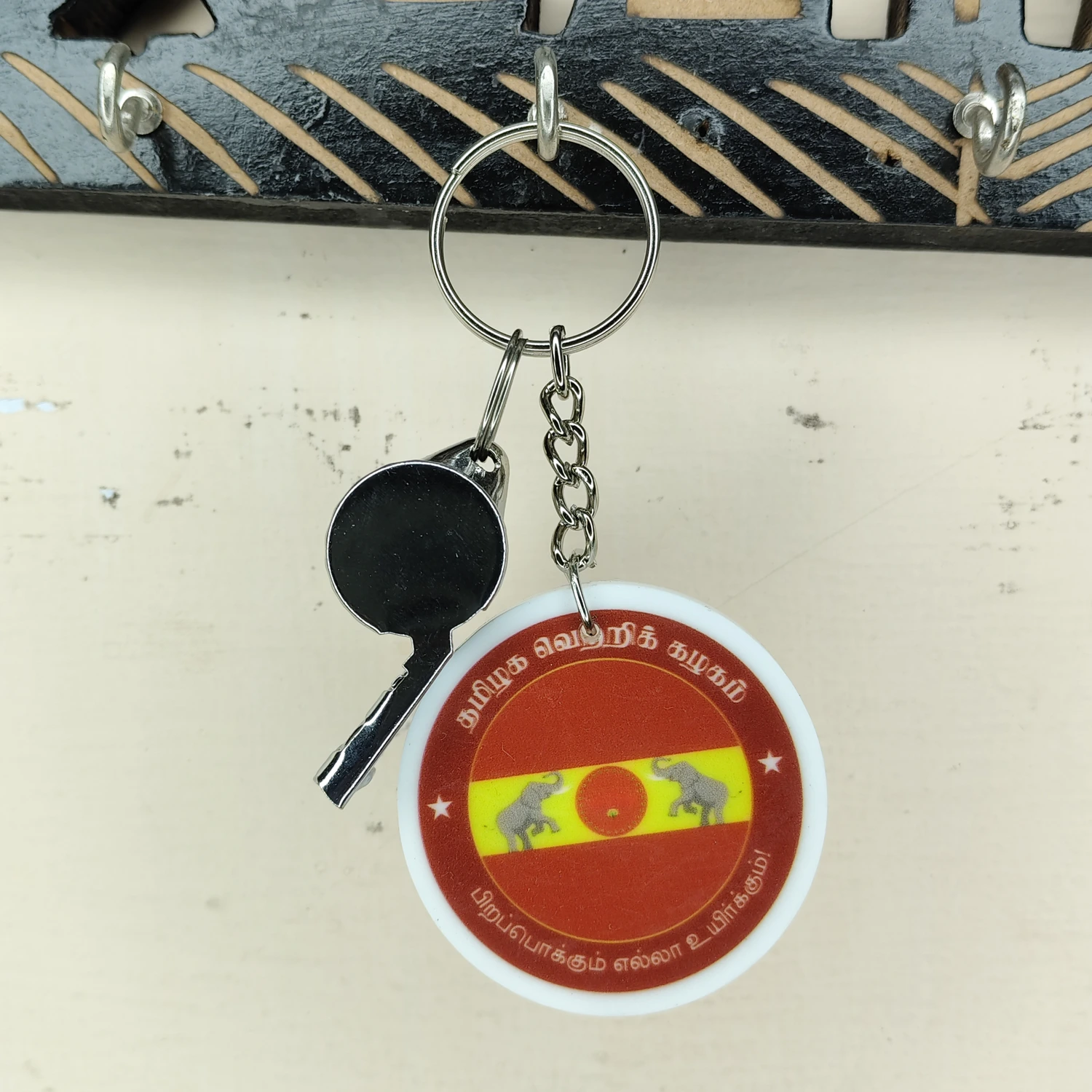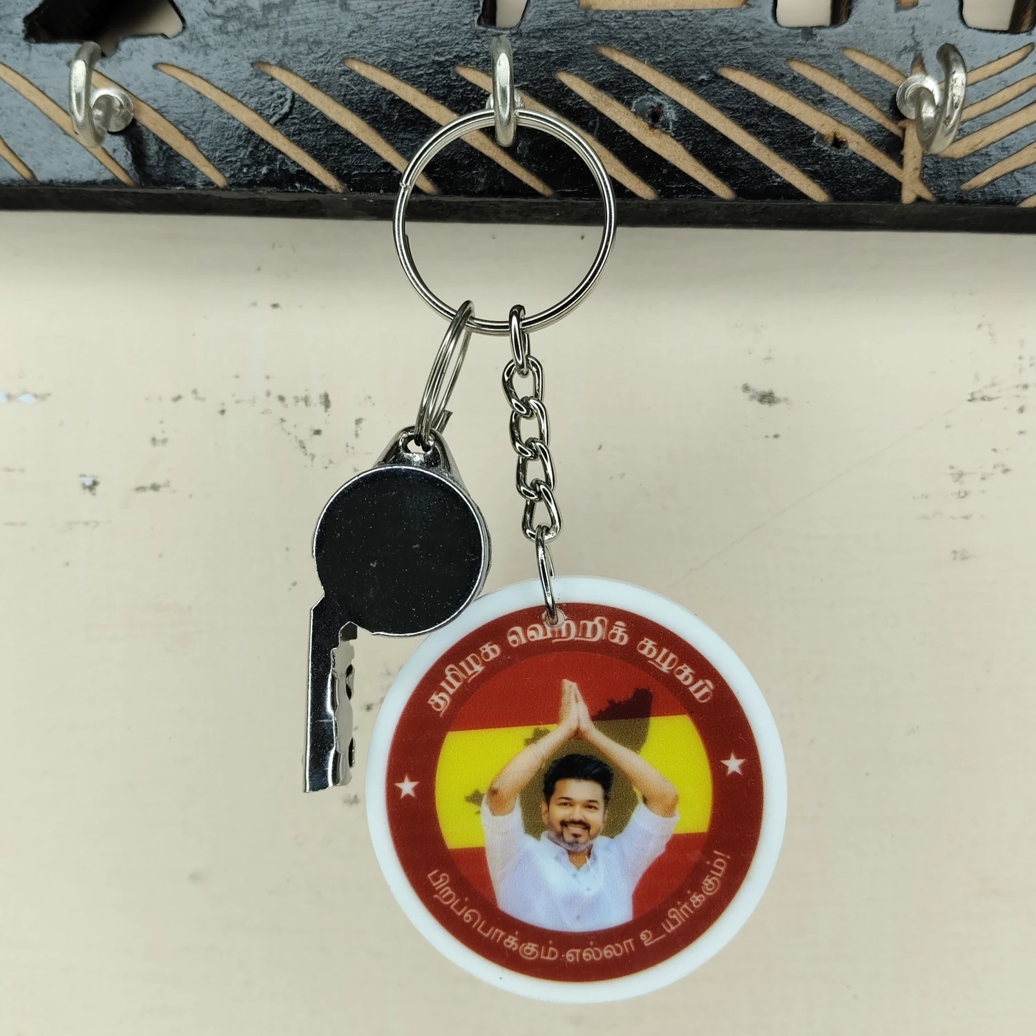 Premium Quality Double side printed TVK Keychain + Steel Whistle